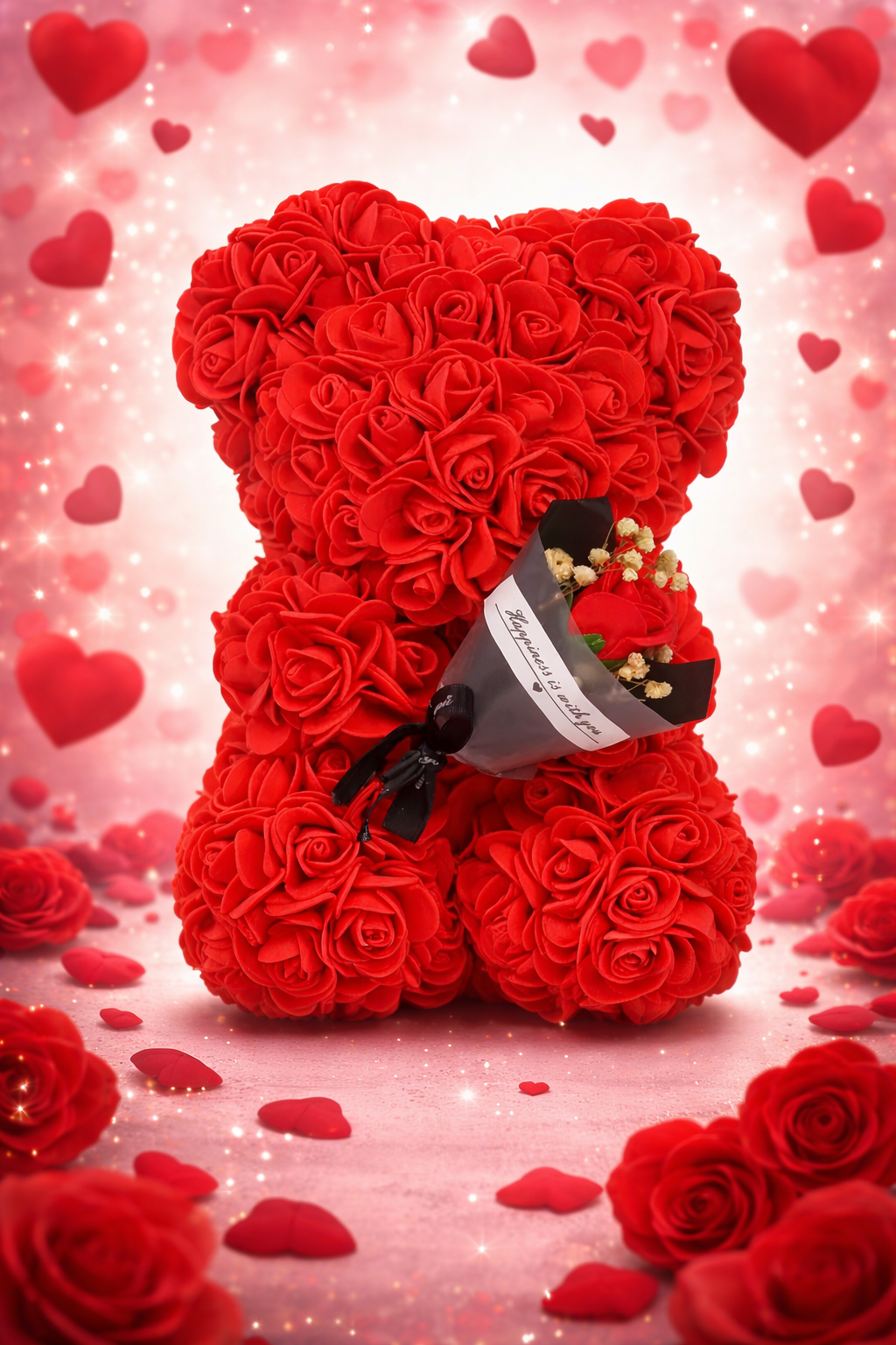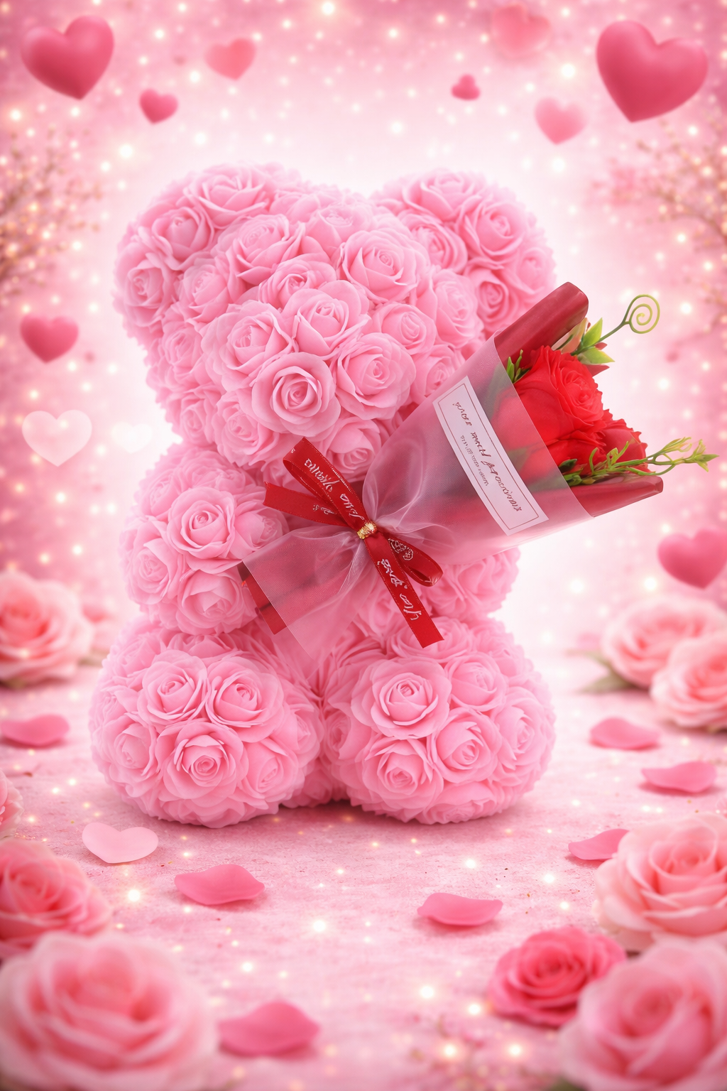 Różany Miś z Bukietem - BukietyMiłości™